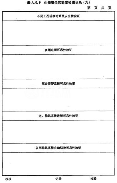A.0.9 生物安全实验室配电和自控系统的检测应按表A.0.9进行记录。